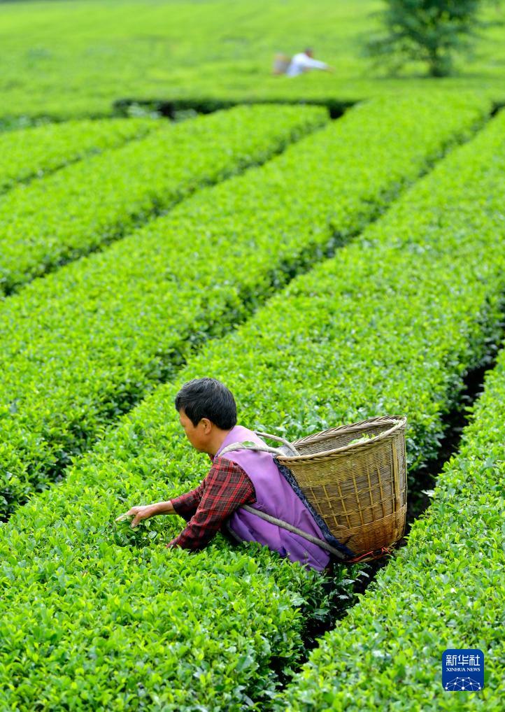 8月8日,湖北省恩施土家族苗族自治州宣恩縣椒園鎮(zhèn)石馬村的茶農(nóng)在采摘立秋茶。