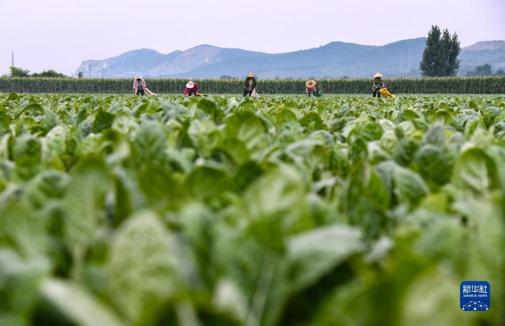 8月8日,農民在河南省濟源市克井鎮北樊村地黃地里拔草。