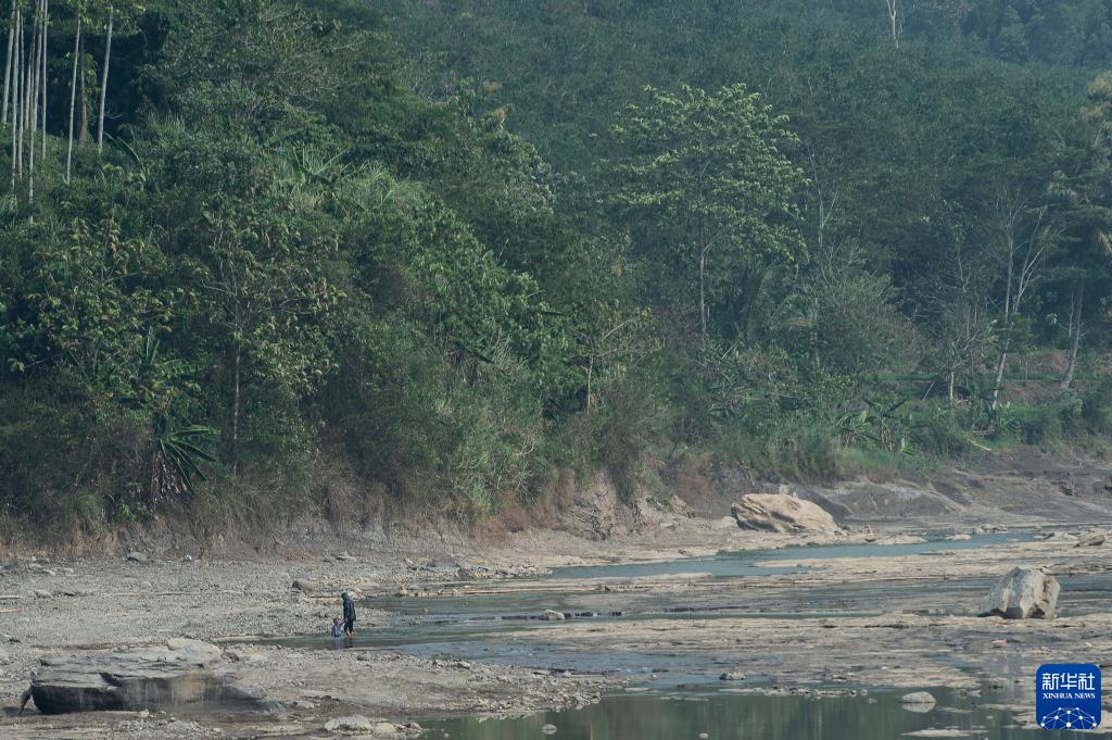 8月7日,在印度尼西亞西爪哇省的茂物,鄉間一條河流的水量大為減少幾近干涸。