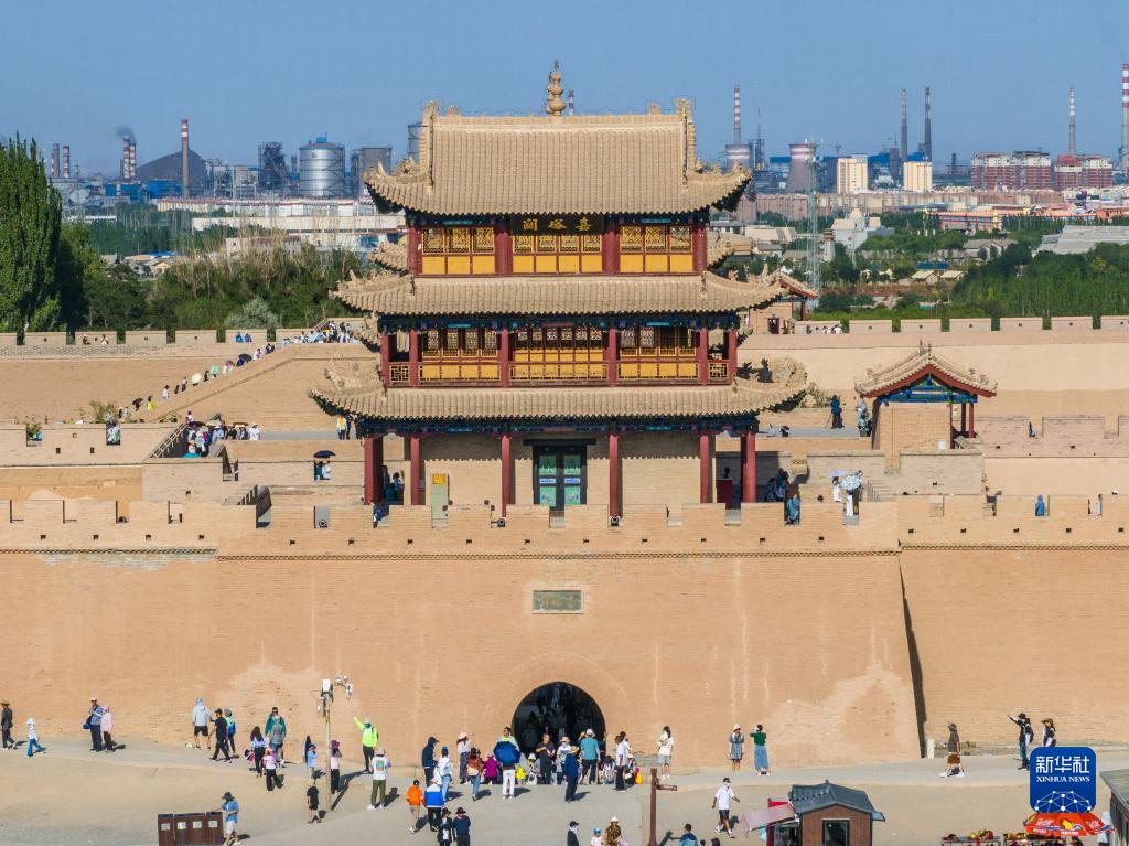 這是8月7日拍攝的嘉峪關(guān)關(guān)城(無(wú)人機(jī)照片)。
