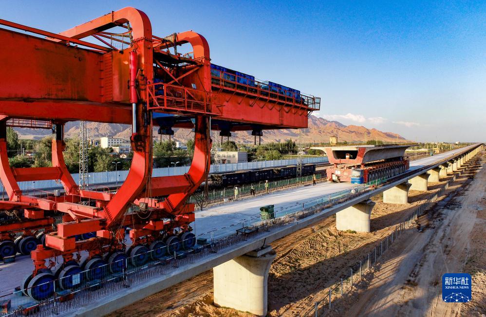 包銀高鐵巴彥淖爾段首座跨鐵路專用線特大橋箱梁架設完成
