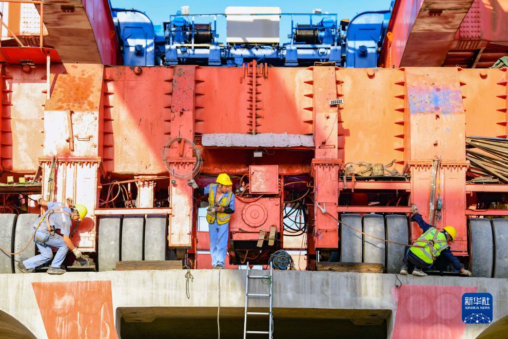 包銀高鐵巴彥淖爾段首座跨鐵路專用線特大橋箱梁架設完成