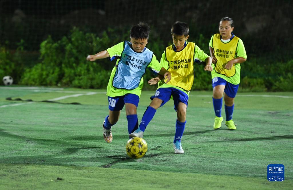 平地屯是位于廣西柳州市柳江區(qū)穿山鎮(zhèn)的一個小山村。8月7日晚,為期近1個月的平地屯暑期公益足球夏令營結束,一場匯報訓練成果的足球對抗賽在村里的綠茵場上打響,吸引眾多村民觀賽。2020年,平地屯的村民組成義務勞動隊,為孩子們修建專用足球場,社會愛心人士為他們捐贈了人工草坪、球門、球場照明燈等設施,公益足球教練定期免費為孩子們培訓,眾人聯合起來,給村里喜歡足球的孩子們點燃了綠茵夢想。