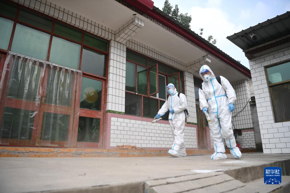 8月8日,工作人員在涿州市桃園街道忠義店村入戶開展防疫消殺作業。