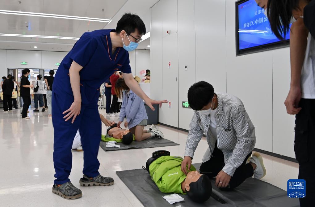 8月8日,天津市第一中心醫院的醫生在健康廣場進行急救知識宣教。