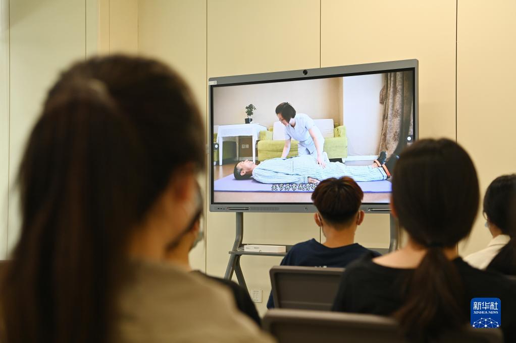 8月8日,人們在天津市第一中心醫(yī)院健康廣場觀看宣教視頻。