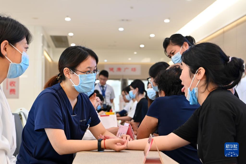 8月8日,天津市第一中心醫院的醫生在健康廣場進行義診。