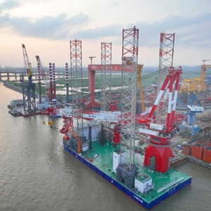 當日,中交海峰2500噸自升自航式風電安裝平臺“海峰1001”順利完成為期兩天的全程抬升拔樁試驗。