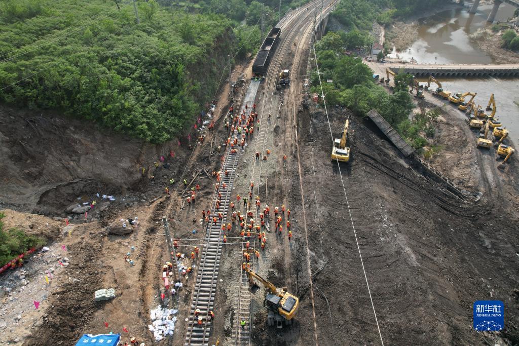8月8日18時30分許,軋道機車緩緩通過豐沙鐵路珠窩站,標志著豐沙鐵路經過71小時搶通恢復通行。與此同時,首列貨物列車于8月8日14時47分從沙城出發,開往三家店方向。