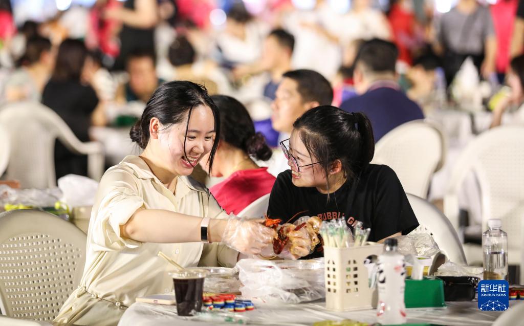 8月4日晚,江蘇省淮安市,市民在“一蝦兩園 嗨游淮安”夏夜消費節上品嘗美食。