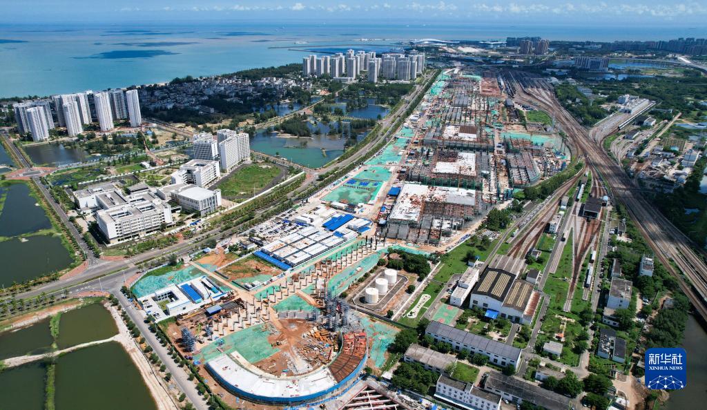 海口新海港和南港“二線口岸”(貨運)集中查驗場所建設項目(7月21日攝,無人機照片)。