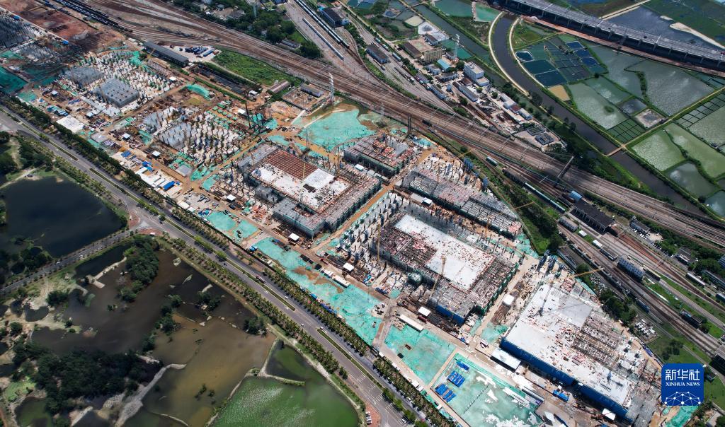 海口新海港和南港“二線口岸”(貨運)集中查驗場所建設項目(7月21日攝,無人機照片)。