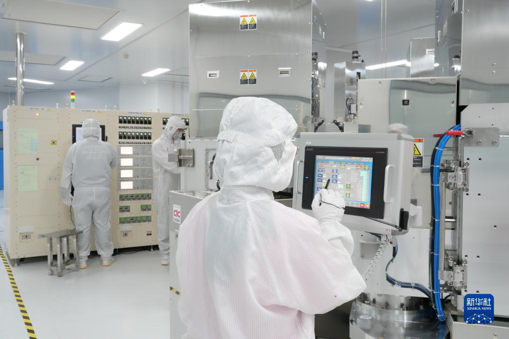 8月9日,在臺州市黃巖區浙江光昊光電科技有限公司,工作人員在操作智能機械生產OLED有機發光半導體器件。