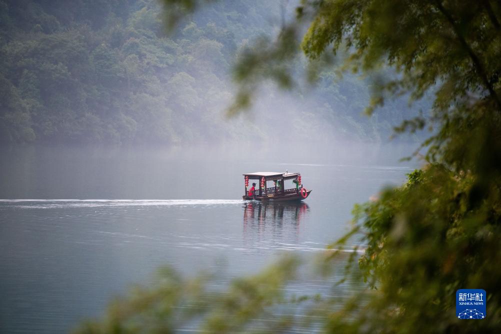 8月9日,游船行駛在資興市東江湖風景區(qū)小東江上。