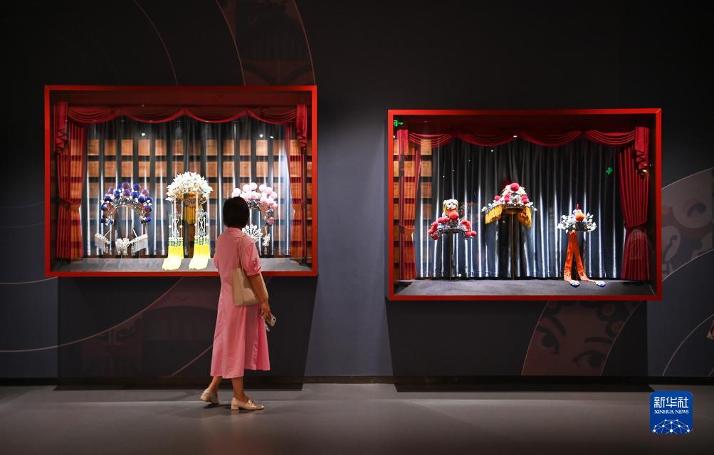 參觀者在中國秦腔藝術博物館里觀展(8月8日攝)。