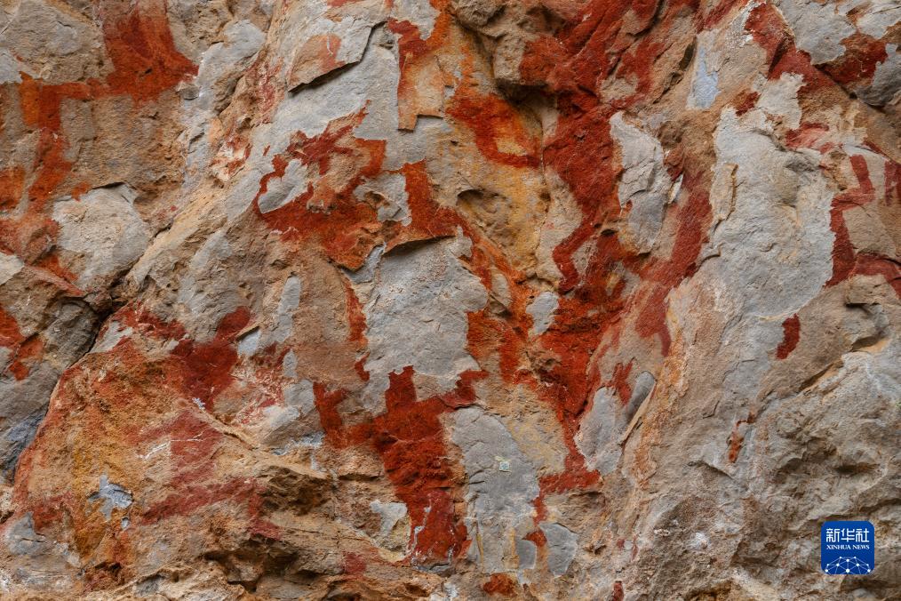 這是巖畫局部,部分巖畫已經缺失(8月8日攝)。