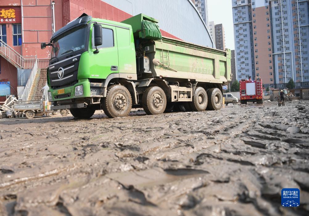 8月9日,卡車在涿州新發地大石橋農副產品批發市場清運垃圾和淤泥。