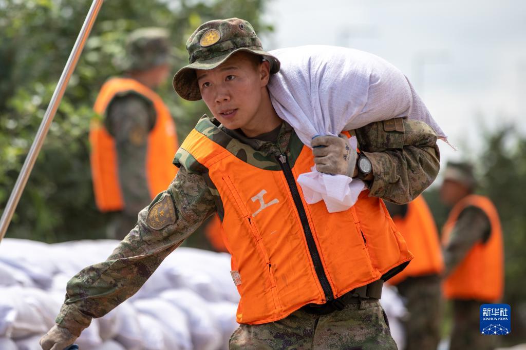 裝滿沙袋,扛上肩頭,疾速前進……一名名年輕官兵身穿迷彩服和救生衣,將一個個白色沙袋筑成一道長約兩公里的“白色長城”。8日正午時分,在黑龍江省哈爾濱市雙城區(qū)萬隆鄉(xiāng)增產(chǎn)村,來自陸軍第78集團軍某旅的800余名官兵奮戰(zhàn)在抗洪一線。