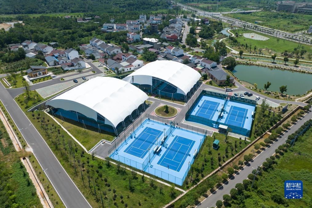 8月9日拍攝的京山文峰網球特色村網球訓練場(無人機照片)。