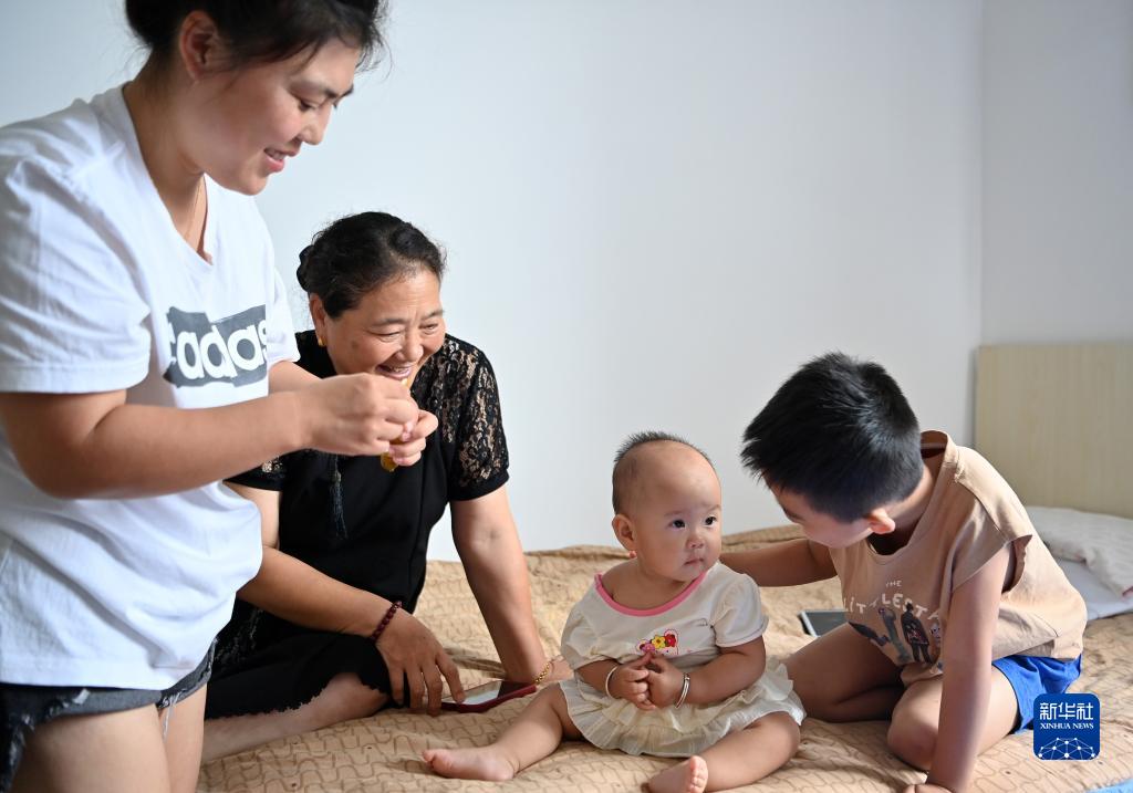 8月9日,轉移群眾在親和儒園安置點內照看小孩。