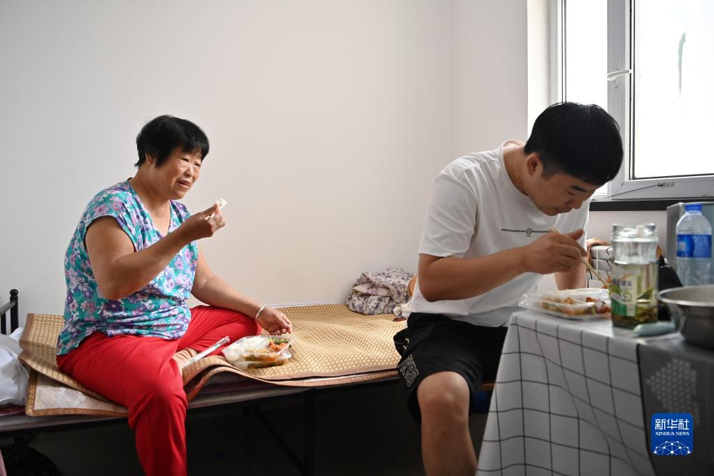 8月9日,轉移群眾在親和儒園安置點內吃飯。