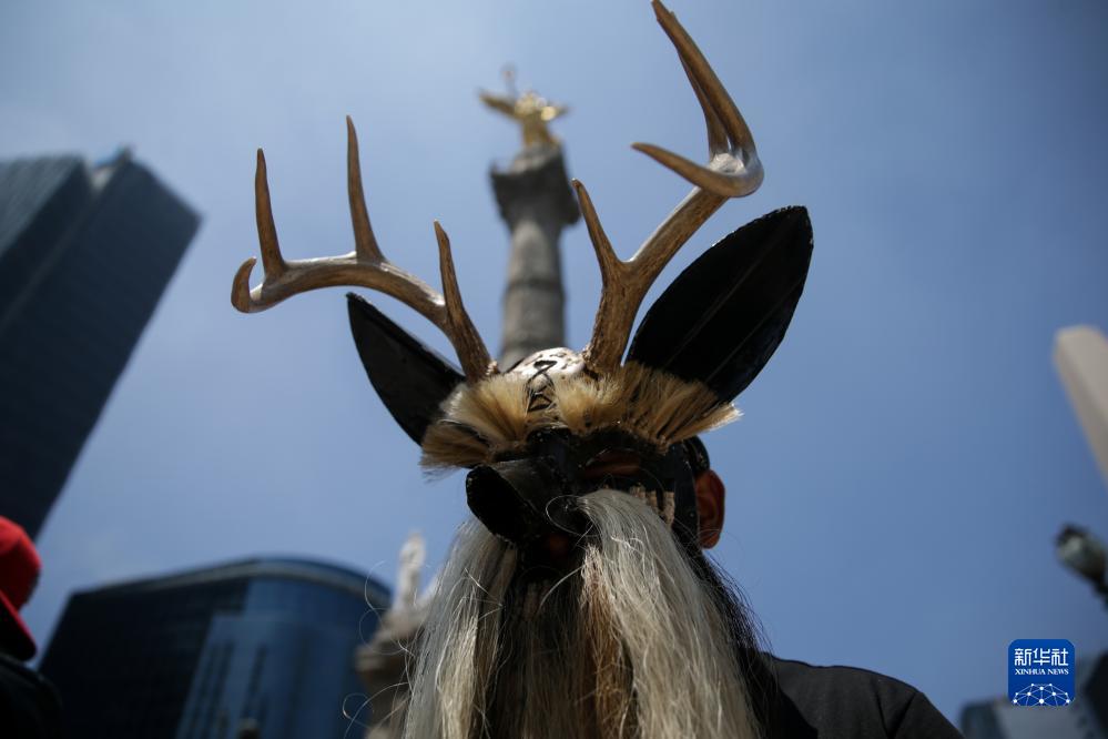 8月9日,在墨西哥首都墨西哥城,演員身著傳統服飾參加世界土著人民國際日慶祝活動。