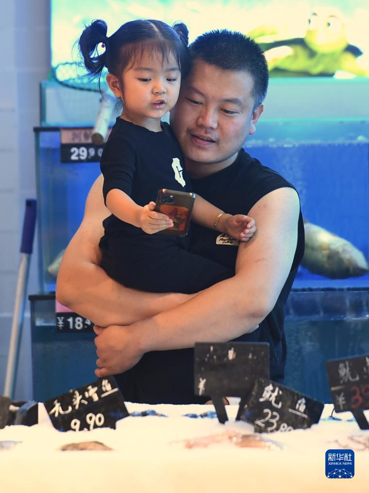 8月10日,市民在涿州市惠友超市鉆石廣場店選購生鮮。