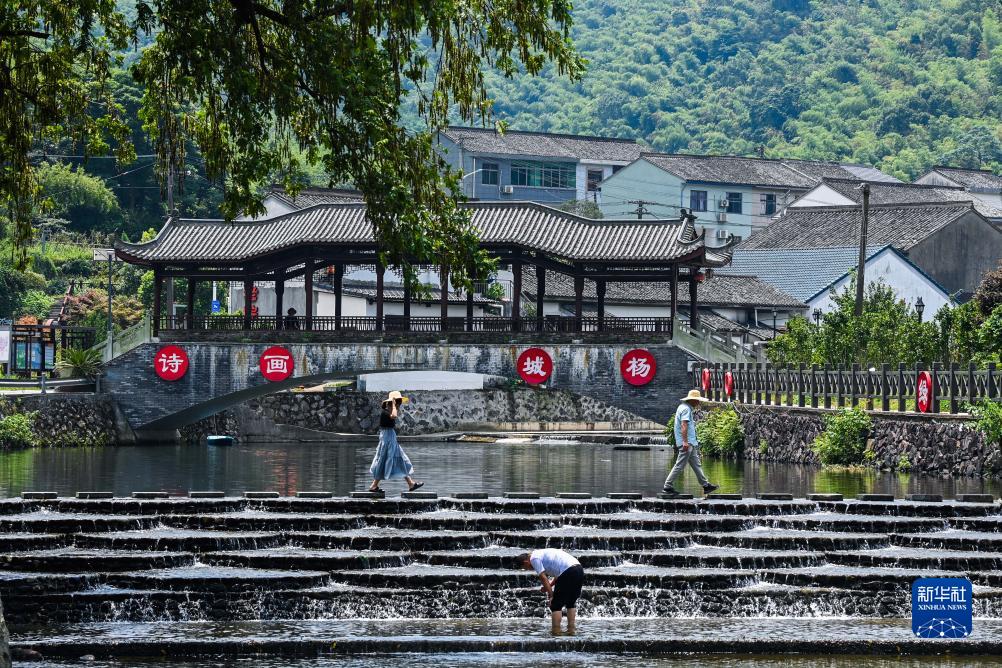 8月10日,游客在寧波市鄞州區(qū)城楊村的溪流玩耍。該村是寧波“最美精品線路”的重要節(jié)點。2020年城楊村積極推動特色鄉(xiāng)村旅游產(chǎn)業(yè)發(fā)展,集體經(jīng)濟年收入從不足10萬元發(fā)展到如今年收入已超50萬元,每年接待游客超15萬人次。