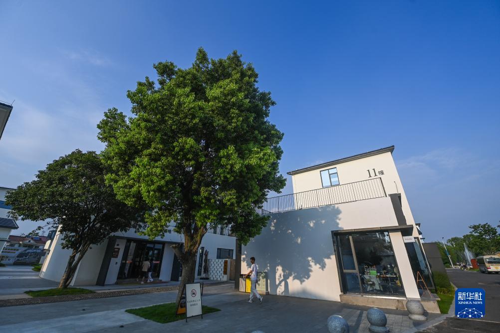 8月9日拍攝的寧波市鎮海區莊市街道永旺村的“野與望鄉村青創集”特色街區。永旺村通過盤活農村閑置農田和農房,完善“農業+”鄉村旅游產業鏈,并引入科創文創產業,打造集零售、餐飲、休閑等服務功能于一體的特色商業街,不斷豐富鄉村業態,走出一條獨具特色的共富新路子。