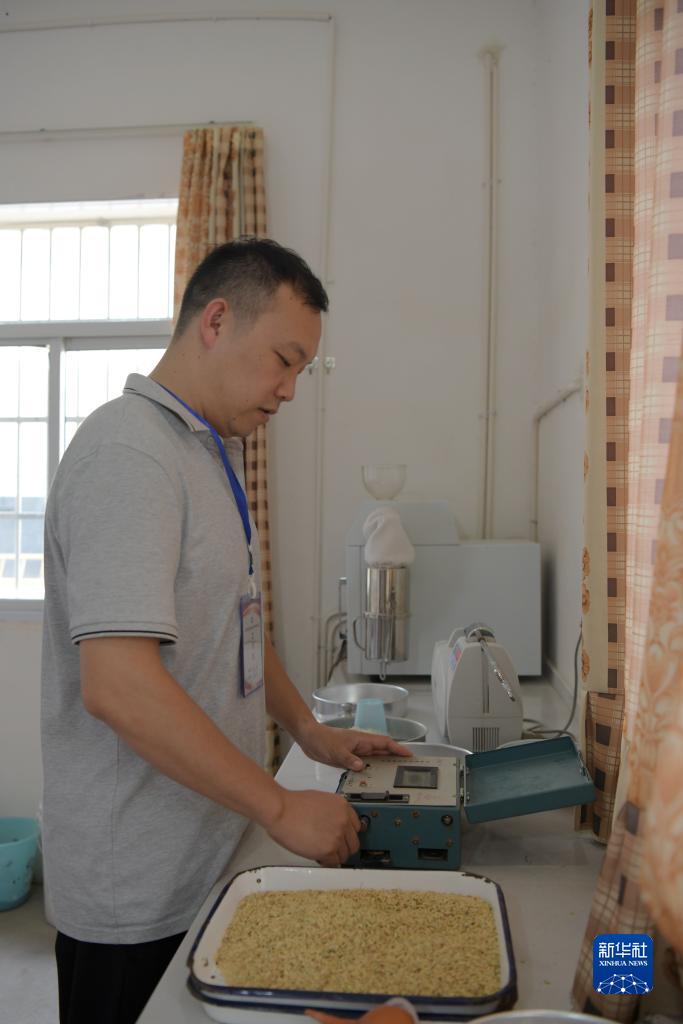 在江西省南昌縣橫崗國家糧食儲備庫,工作人員通過設(shè)備檢測抽樣糧食的水分、品質(zhì)、農(nóng)藥殘余、重金屬等情況(8月8日攝)。