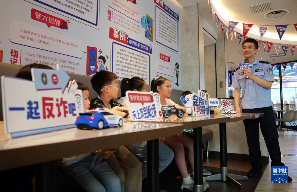 8月10日,福州市公安局刑偵支隊民警給小朋友講解反詐知識。