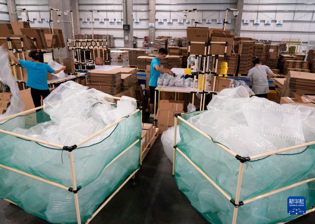 最近,在跨境電子商務活躍的浙江省金華市金義綜合保稅區,工作人員忙著分揀、打包發往各地的包裹,現場一派忙碌的景象。據金華海關統計,今年1至7月,金義綜合保稅區網購保稅進出口包裹約1555萬票,總貨值約46億元,其中進口貨值同比增長19%。