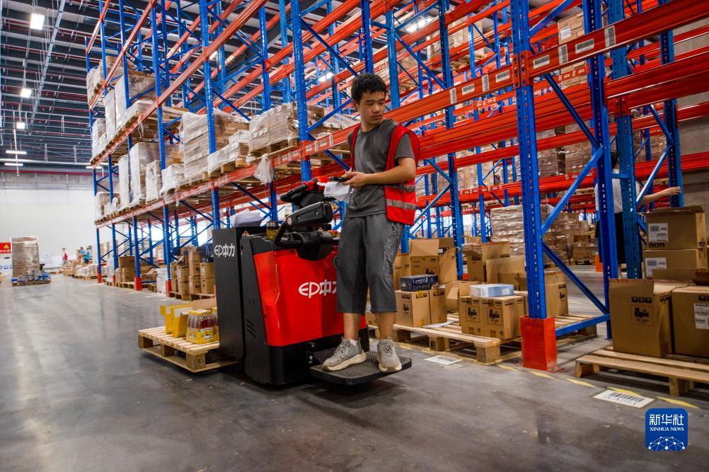 8月10日,在浙江省金華市金義綜合保稅區云倉跨境華東中心倉內,工作人員在發貨前理貨。