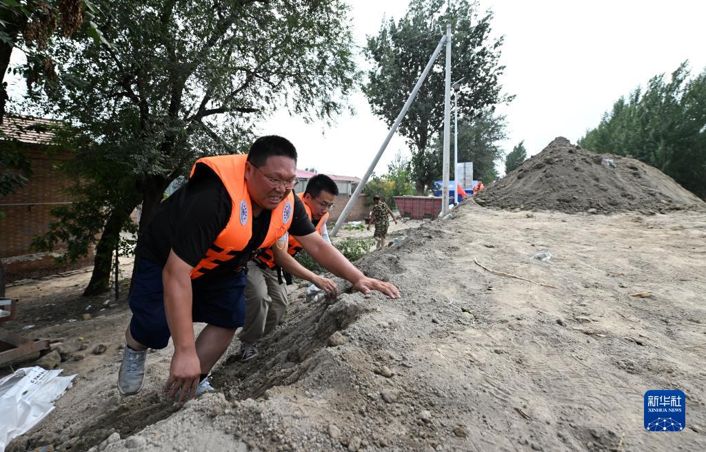 8月10日,抗洪人員在天津市靜海區大清河臺頭段南堤上巡查。