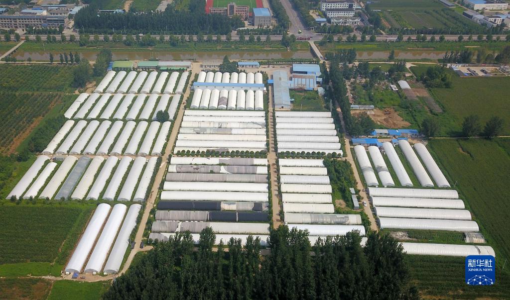這是位于山東省菏澤市定陶區(qū)天中街道南城社區(qū)的一處種植黑皮雞樅菌的食用菌種植基地(8月10日攝,無人機(jī)照片)。