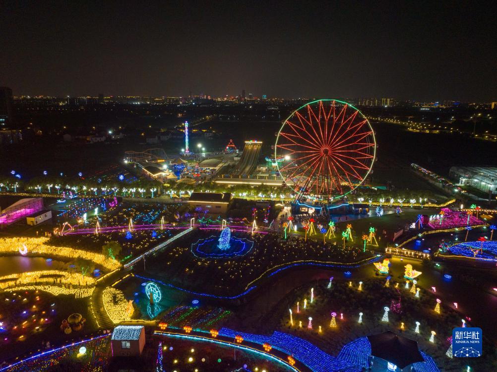 8月10日拍攝的寧波市江北區(qū)達人村景區(qū)夜景(無人機照片)。