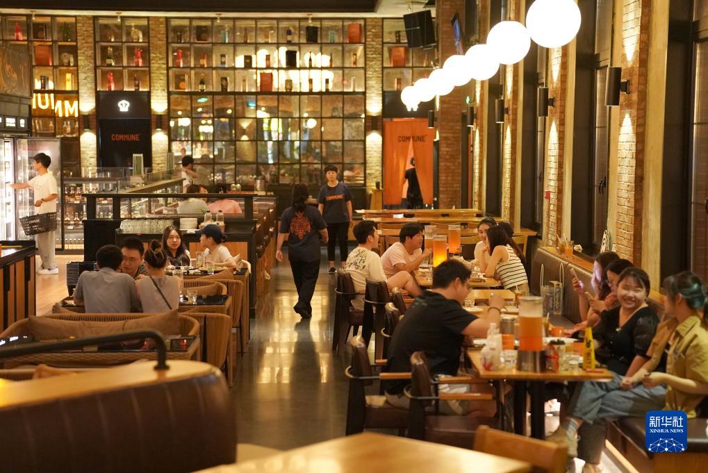 消費者在西安市一家餐吧內就餐休閑(7月30日攝)。