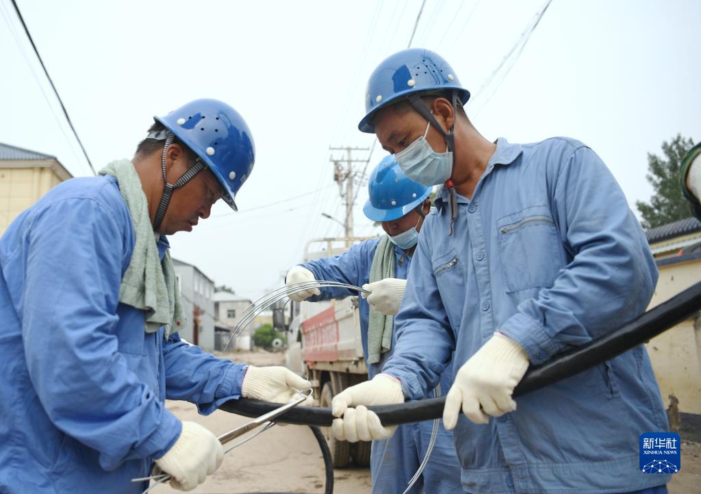 8月11日,邯鄲供電公司搶修人員在涿州市碼頭鎮向五村搶修電力設施。