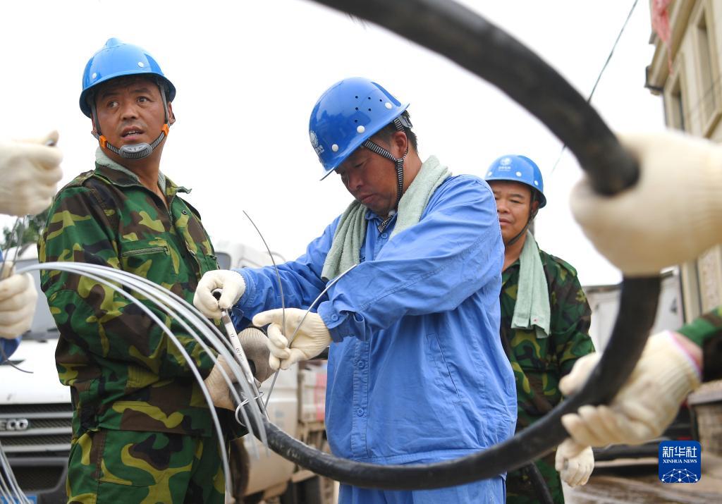 8月11日,邯鄲供電公司搶修人員在涿州市碼頭鎮向五村搶修電力設施。