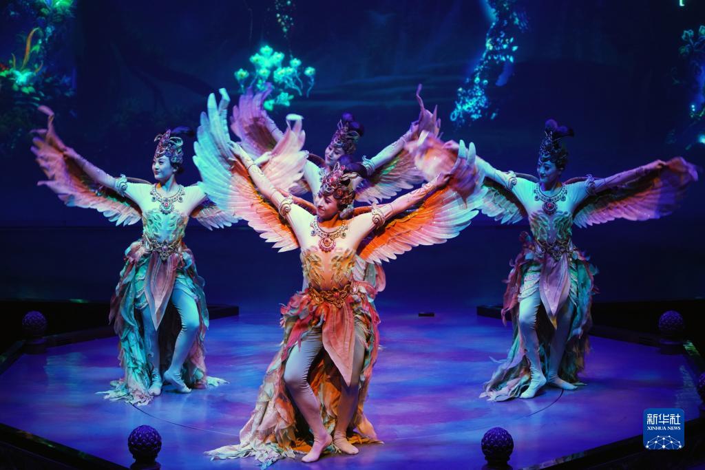 今年以來,脫胎于敦煌文化的洞窟沉浸式體驗劇《樂動敦煌》、室內情景體驗劇《又見敦煌》、沙漠實景演出《敦煌盛典》和中國殘疾人藝術團情景音畫劇《千手千眼》四場劇目在絲路名城甘肅敦煌同步上演,劇目將敦煌歷史底蘊、服飾文化、樂舞文化等生動融合,為游客呈現出精彩絕倫的敦煌文化視覺盛宴,深受中外游客喜愛。截至8月10日,四大劇目今年已累計演出1175場次,觀看游客突破66萬人次。其中,《樂動敦煌》演出借助洞窟式實景移動舞臺和全息投影等技術,還原了敦煌壁畫中的樂舞盛景,講述了西域少年白歆苦苦追尋并最終在敦煌樂舞壁畫中領略到音樂真諦的故事,觀眾在可游走、互動的沉浸式洞窟劇場內,零距離感受敦煌藝術中詩、舞、音、畫的璀璨繁盛。