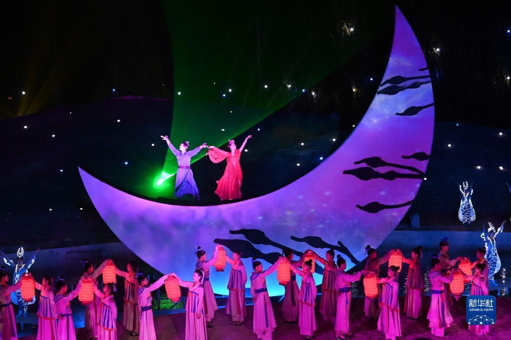 今年以來,脫胎于敦煌文化的洞窟沉浸式體驗劇《樂動敦煌》、室內情景體驗劇《又見敦煌》、沙漠實景演出《敦煌盛典》和中國殘疾人藝術團情景音畫劇《千手千眼》四場劇目在絲路名城甘肅敦煌同步上演,劇目將敦煌歷史底蘊、服飾文化、樂舞文化等生動融合,為游客呈現出精彩絕倫的敦煌文化視覺盛宴,深受中外游客喜愛。截至8月10日,四大劇目今年已累計演出1175場次,觀看游客突破66萬人次。其中,《敦煌盛典》以敦煌鳴沙山月牙泉為背景,將沙漠景觀與現代舞美結合,將墻體燈光融入實景演出,講述了一段發生在古絲綢之路重鎮敦煌的愛情故事,展示了敦煌的歷史文化及人文風貌。