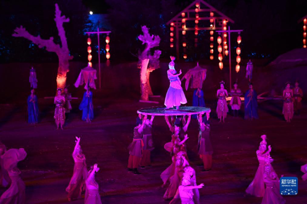 今年以來,脫胎于敦煌文化的洞窟沉浸式體驗劇《樂動敦煌》、室內情景體驗劇《又見敦煌》、沙漠實景演出《敦煌盛典》和中國殘疾人藝術團情景音畫劇《千手千眼》四場劇目在絲路名城甘肅敦煌同步上演,劇目將敦煌歷史底蘊、服飾文化、樂舞文化等生動融合,為游客呈現出精彩絕倫的敦煌文化視覺盛宴,深受中外游客喜愛。截至8月10日,四大劇目今年已累計演出1175場次,觀看游客突破66萬人次。其中,《敦煌盛典》以敦煌鳴沙山月牙泉為背景,將沙漠景觀與現代舞美結合,將墻體燈光融入實景演出,講述了一段發生在古絲綢之路重鎮敦煌的愛情故事,展示了敦煌的歷史文化及人文風貌。