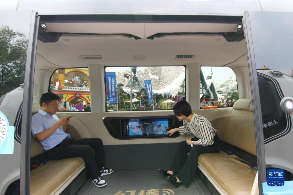 8月11日,受邀嘉賓在無人駕駛游覽車內(nèi)體驗觸屏操作。