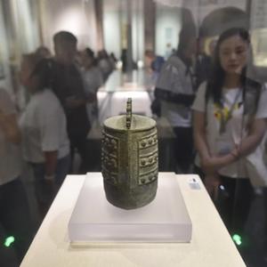 8月9日,觀眾在河南省開封市博物館里參觀“大晟夷則”銅編鐘。
