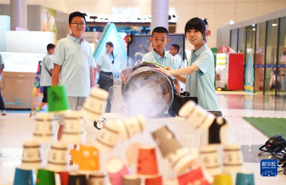 8月10日,夏令營學生在河南省科技館“科學之夜”活動中參觀體驗。