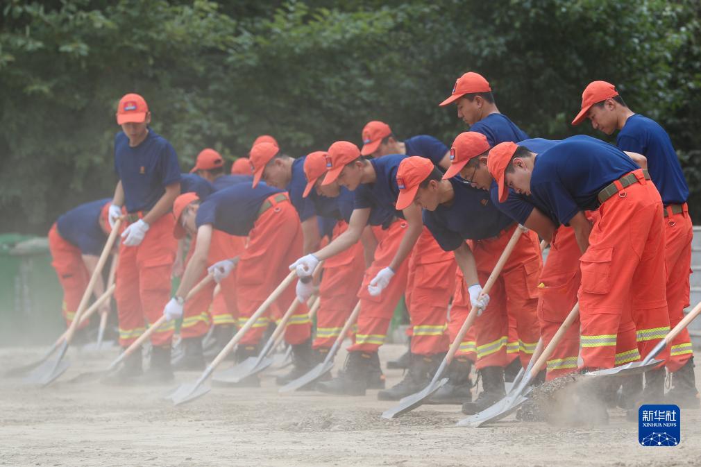 8月11日,在黑龍江省尚志市東浦公館小區(qū)附近,哈爾濱市森林消防支隊(duì)的消防員在清理道路。