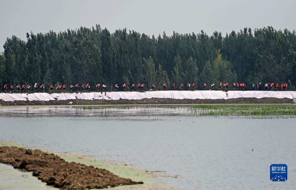 在天津市靜海區(qū)王口鎮(zhèn)千里堤、茁頭排干西堤加固搶險一線,武警第一機動總隊官兵爭分奪秒加固涉險堤壩,切實維護群眾生命安全。