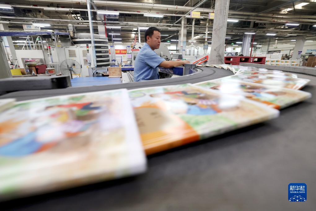 8月11日,在位于石家莊的河北新華第二印刷有限責任公司,工人在教材印刷生產線工作。