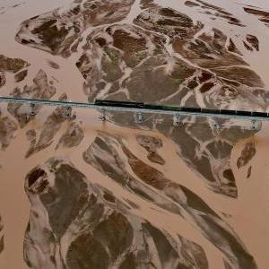 科考隊員在楚瑪爾河辮狀河道岸邊進行科考作業(7月29日攝)。