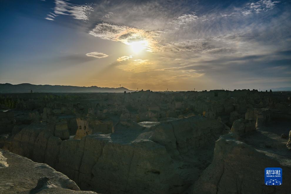8月11日拍攝的夕陽下的交河故城。